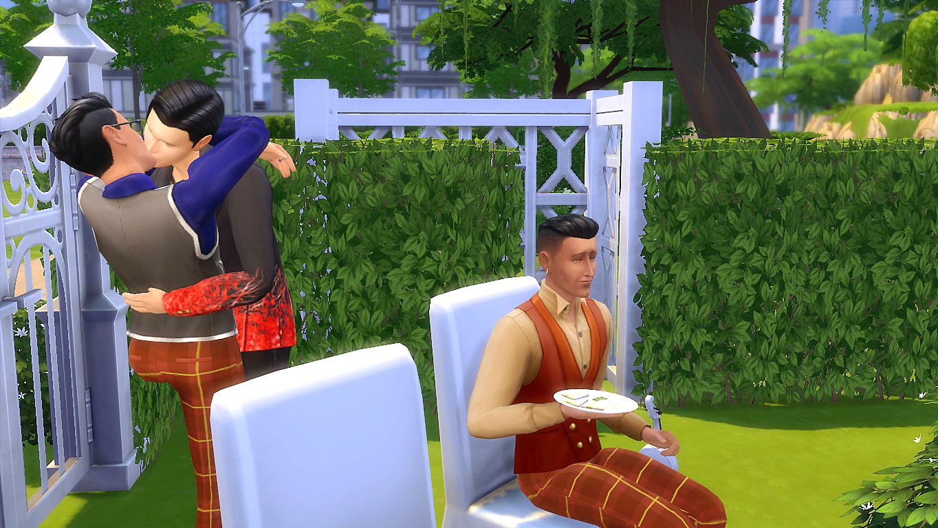 Après une toilette rapide et sommaire, Lorenzo est enfin en état de partager le gâteau de mariage avec sa femme adorée !